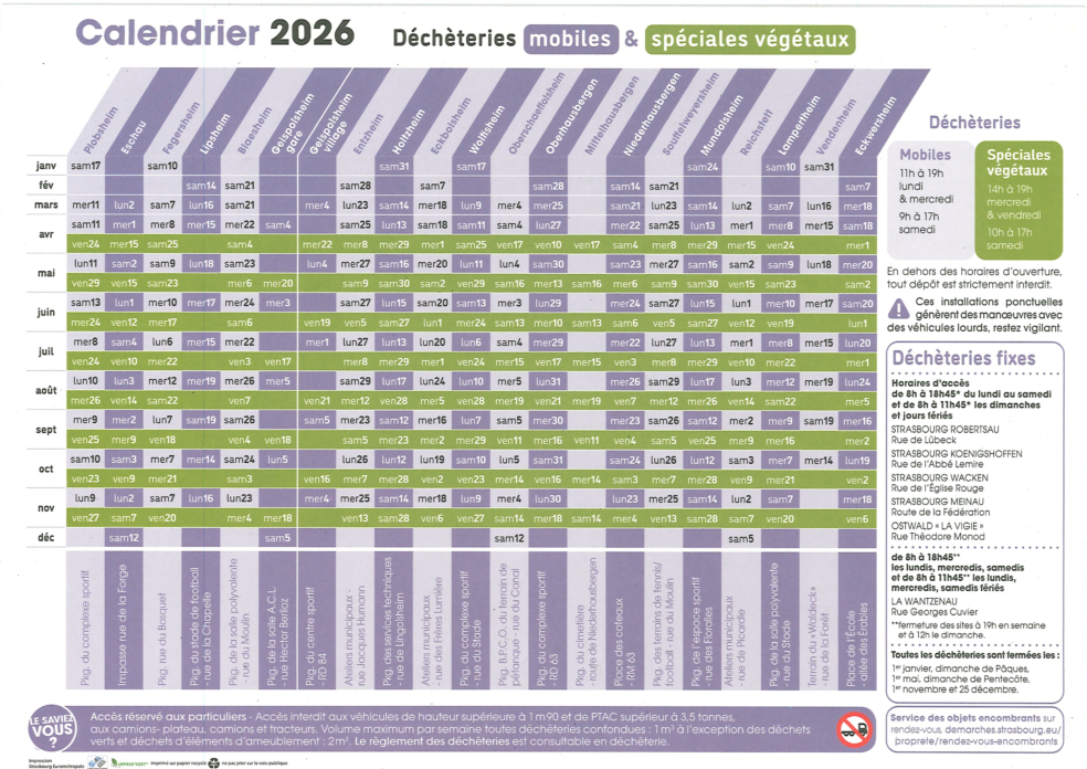 Le nouveau calendrier de collecte des déchets ménager et le planning des déchèteries mobiles et spéciales végétaux est disponible.
